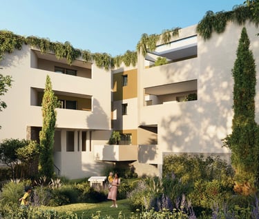 Blanc Coton se compose de logements du T1 au T3 chacun profitant d’un environnement paysager soigné au sein de la résidence.