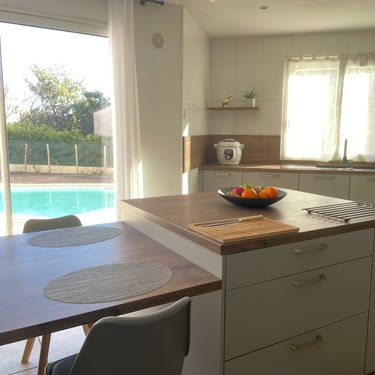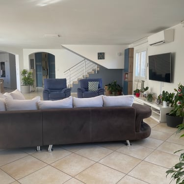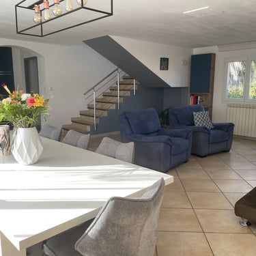 Spacieuse et lumineuse villa contemporaine de 2002, offrant de très beaux volumes et des prestations de qualité. Elle se compose d’un vaste séjour de 57 m², ouvert sur une cuisine moderne de 20 m², formant un espace de vie convivial et baigné de lumière.